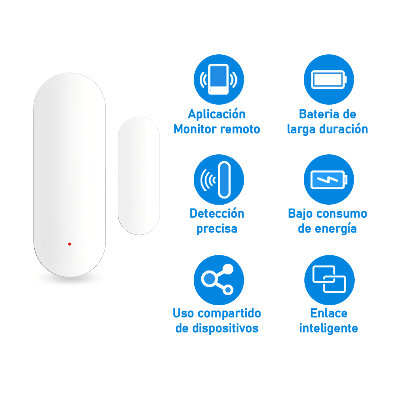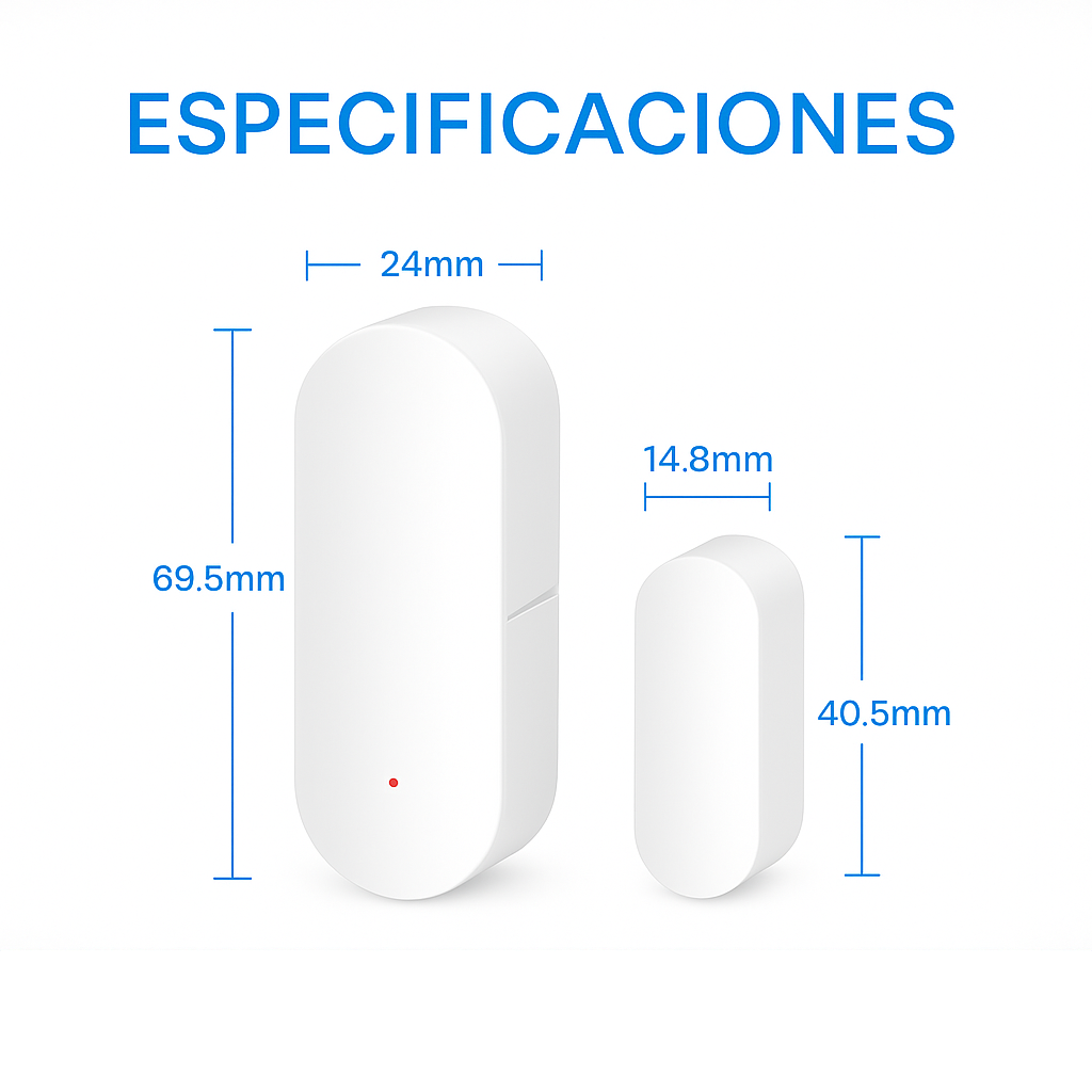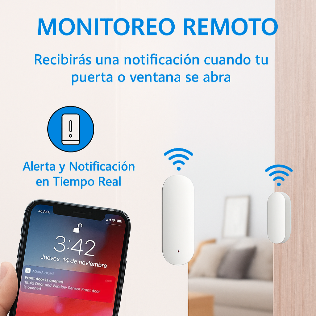 Se conecta por WiFi + Bluetooth, logrando una señal más estable y rápida. Su diseño compacto con adhesivo permite instalarlo en puertas, ventanas o cajones sin dañar los muebles.